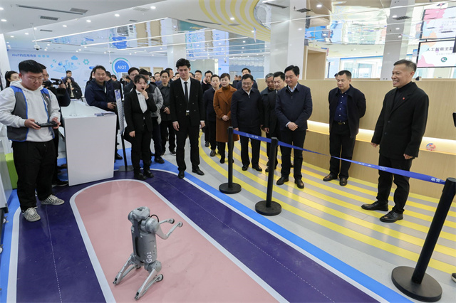 開館儀式后,顧興旺一行前往館內(nèi)創(chuàng)造工坊、科學(xué)實(shí)驗(yàn)室、MR全息體驗(yàn)館、無人機(jī)主題空間等區(qū)域參觀。他強(qiáng)調(diào),“一館一基地”的順利投入使用,將為市民兒童展示先進(jìn)的前沿科技成果,讓市民兒童了解現(xiàn)代科技的發(fā)展方向和趨勢。場館和有關(guān)部門要抓好安全運(yùn)營,針對不同年齡段兒童開展豐富多彩的科普教育,同時(shí)要狠抓兒童動(dòng)手能力、創(chuàng)造能力鍛煉,進(jìn)一步激發(fā)培養(yǎng)青少年的創(chuàng)新思維、創(chuàng)新精神和創(chuàng)新能力,更好服務(wù)市民生活,著力將“一館一基地”打造成為全區(qū)、全市新的城市品牌,助力城市高質(zhì)量發(fā)展。