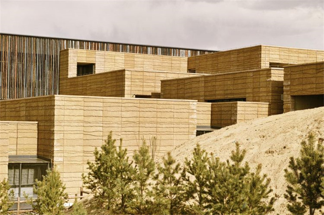 選址于無定河南岸的沙丘臺(tái)塬上的統(tǒng)萬城遺址博物館,是一座覆土式特色的“考古”博物館,博物館設(shè)計(jì)上采取消隱手法,好似一個(gè)個(gè)考古“探坑”,將建筑體量化整為零,形成一個(gè)個(gè)相互關(guān)聯(lián)、埋入地下的“寶盒”,建筑風(fēng)貌與沙漠整體環(huán)境氛圍和諧一致。