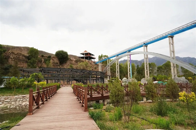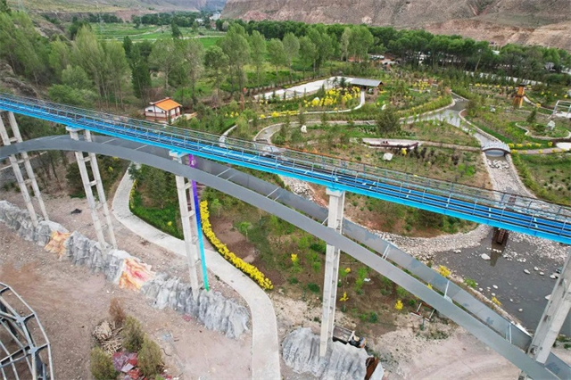走在項目現(xiàn)場,記者被一棟三瓣花形狀的建筑和高聳的玻璃棧道吸引,切割、安裝螺栓、焊接,建筑工人們有的正在進行博物館外立面裝飾裝修,有的身穿護具在玻璃棧道上作業(yè),施工現(xiàn)場一片熱火朝天,吹響了項目建設(shè)的“沖鋒號”。仔細端詳之下還發(fā)現(xiàn),這些建筑與周圍的生態(tài)景觀相映襯,散發(fā)出了獨特的自然美。