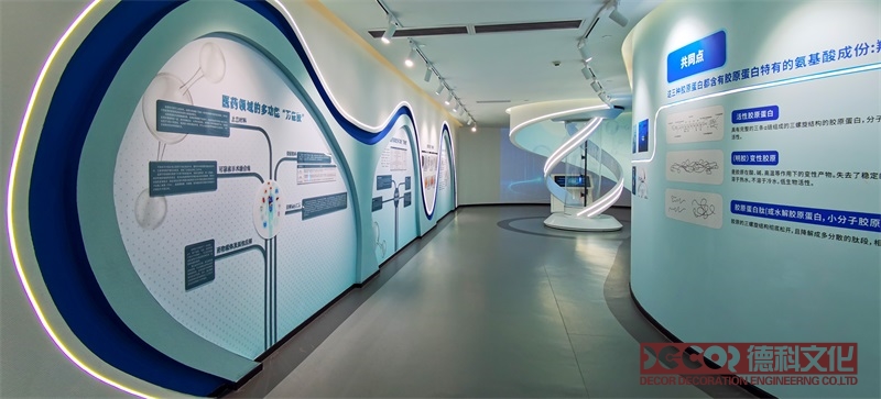 設(shè)計(jì)理念:膠原展覽館設(shè)計(jì)將圍繞“前沿科技”“民族產(chǎn)業(yè)”“美好生活”的主題概念,通過聲光電等形式,立體展現(xiàn)膠原蛋白的結(jié)構(gòu)功效與科技發(fā)展、核心成果與產(chǎn)業(yè)前景。